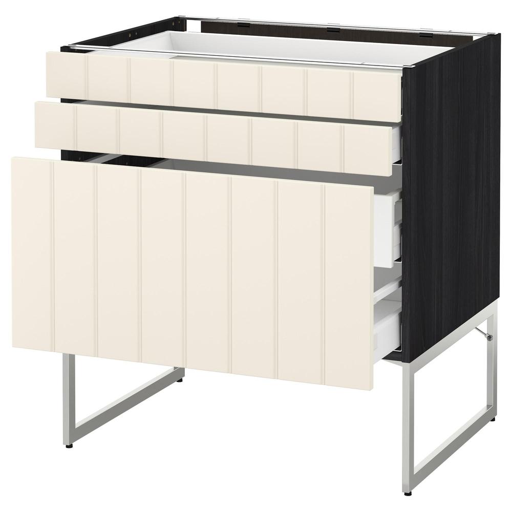 МЕТОД / МАКСИМЕРА Напольн шкаф 3фронт пнл/2низ/2ср ящ - под дерево черный, Хитарп белый с оттенком, 80x60x60 см