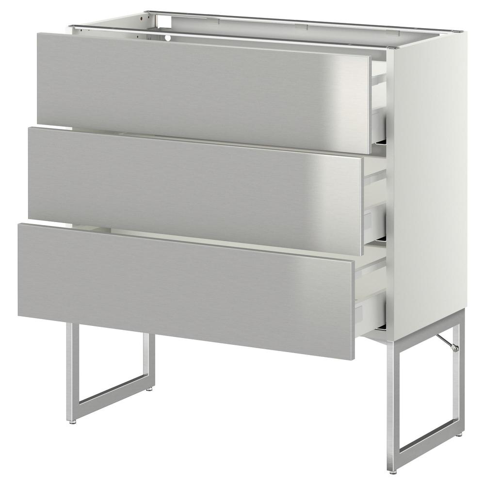 МЕТОД / МАКСИМЕРА Нплн шк 3 фрнт/3 средн ящика - белый, Гревста нержавеющ сталь, 80x37x60 см