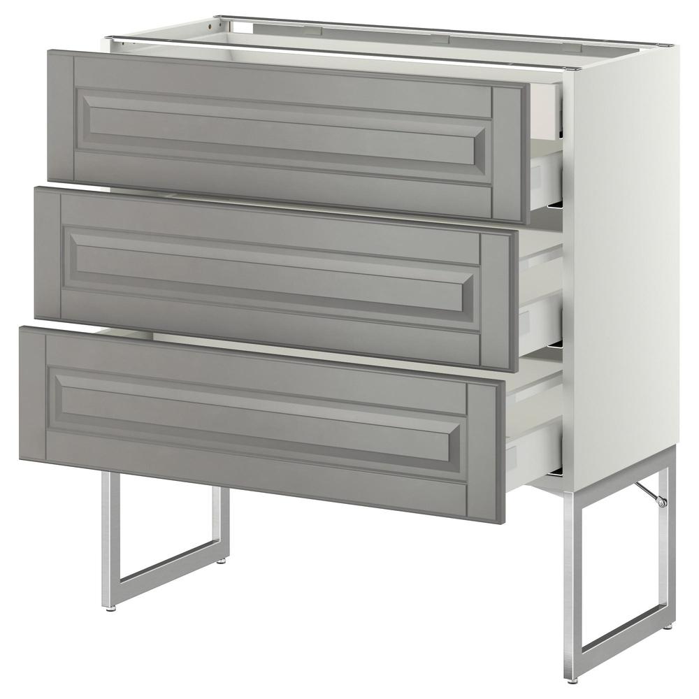 МЕТОД / МАКСИМЕРА Напольн шкаф 3фронт пнл/2низ/2ср ящ - белый, Будбин серый, 80x37x60 см