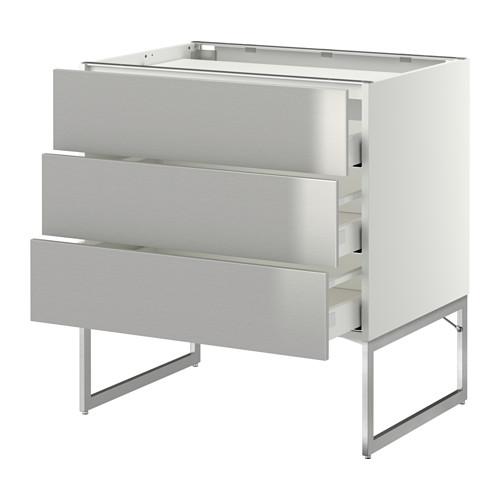 МЕТОД / МАКСИМЕРА Напольн шкаф/3фронт пнл/3ящика - белый, Гревста нержавеющ сталь, 80x60x60 см