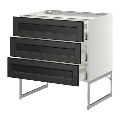 МЕТОД / МАКСИМЕРА Напольн шкаф/3фронт пнл/3ящика - 80x60x60 см, Лаксарби черно-коричневый, белый