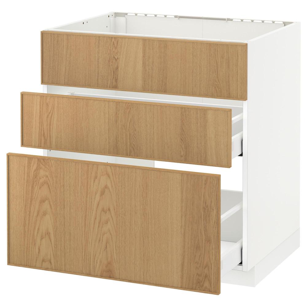 МЕТОД / МАКСИМЕРА Напольн шк п-мойку+3фрнт пнл/2ящ - белый, Экестад дуб, 80x60 см