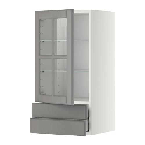МЕТОД / МАКСИМЕРА Навесной шкаф/стекл дверца/2 ящика - белый, Будбин серый, 40x80 см