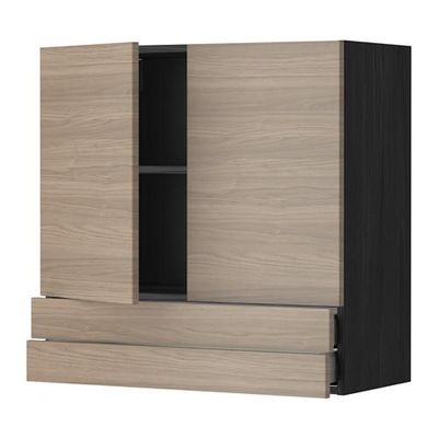 МЕТОД / МАКСИМЕРА Навесной шкаф/2дверцы/2ящика - 80x80 см, Брокхульт под грецкий орех светло-серый, под дерево черный