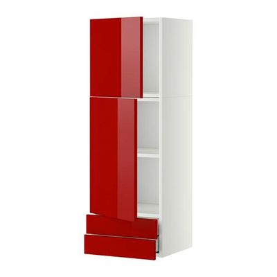 МЕТОД / МАКСИМЕРА Навесной шкаф/2дверцы/2ящика - 40x120 см, Рингульт глянцевый красный, белый
