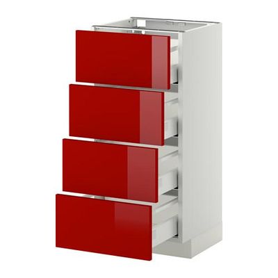 МЕТОД / МАКСИМЕРА Напольн шкаф 4 фронт панели/4 ящика - 40x37 см, Рингульт глянцевый красный, белый