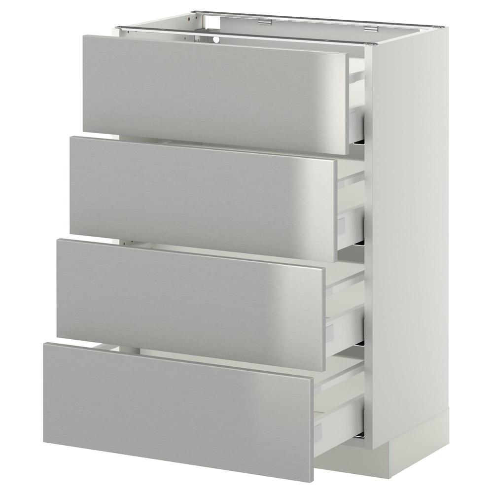 МЕТОД / МАКСИМЕРА Напольн шкаф 4 фронт панели/4 ящика - белый, Гревста нержавеющ сталь, 60x37 см