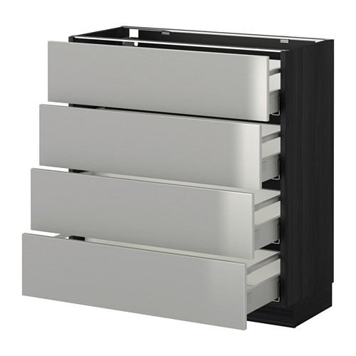 МЕТОД / МАКСИМЕРА Напольн шкаф 4 фронт панели/4 ящика - под дерево черный, Гревста нержавеющ сталь, 80x37 см
