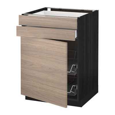 МЕТОД / МАКСИМЕРА Напольн шкаф/дверца/2ящ/првл крзн - 60x60 см, Брокхульт под грецкий орех светло-серый, под дерево черный