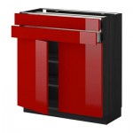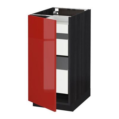 МЕТОД / МАКСИМЕРА Напольный шкаф с 1двр/3ящ - 40x60 см, Рингульт глянцевый красный, под дерево черный