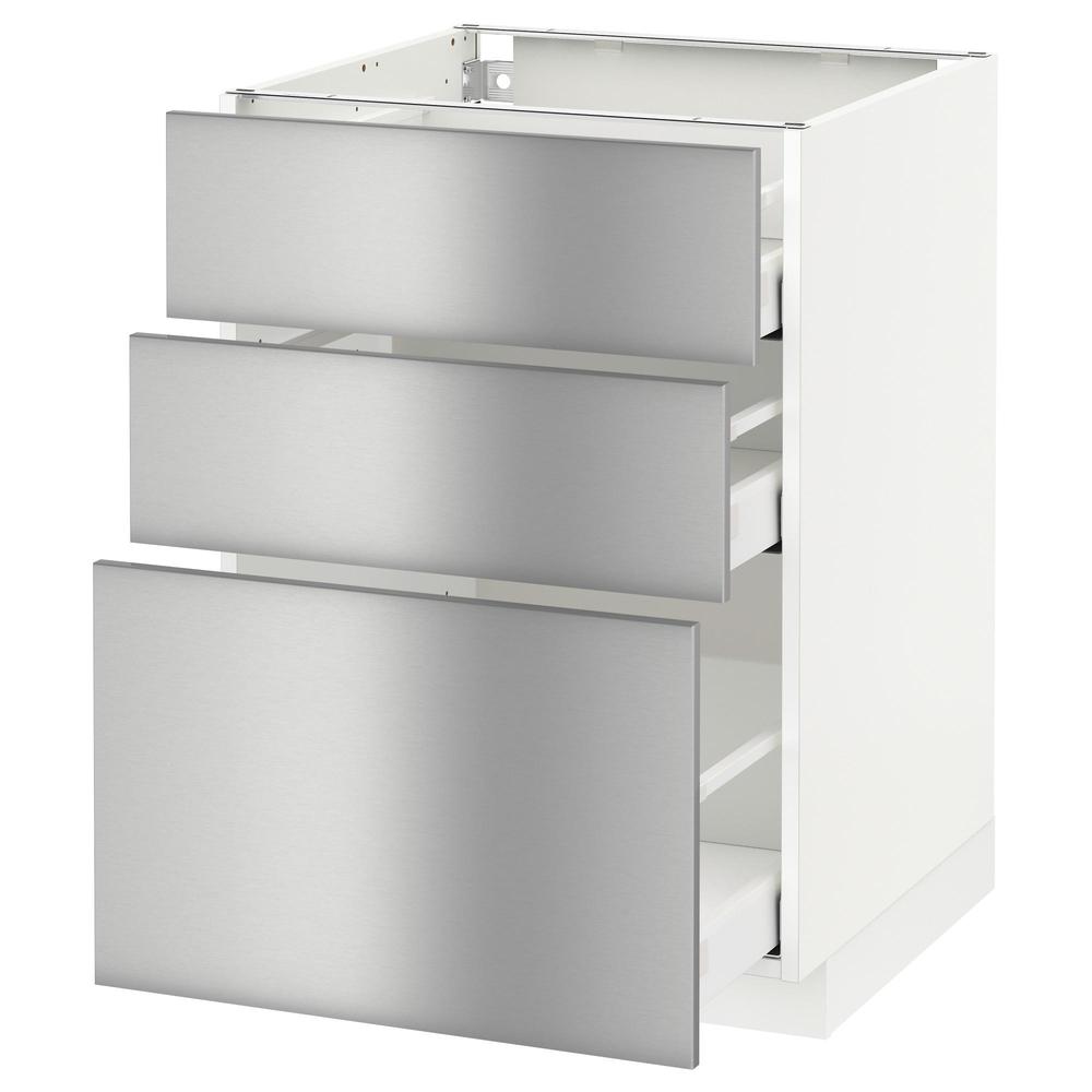 МЕТОД / МАКСИМЕРА Напольный шкаф с 3 ящиками - белый, Гревста нержавеющ сталь, 60x60 см