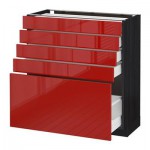 МЕТОД / МАКСИМЕРА Напольный шкаф с 5 ящиками - 60x60 см, Рингульт глянцевый красный, под дерево черный