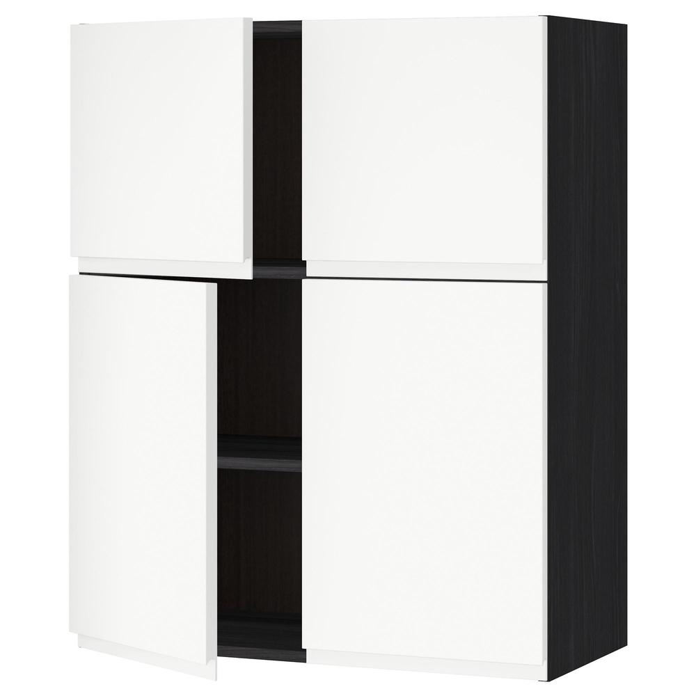 МЕТОД Навесной шкаф с полками/4дверцы - под дерево черный, Воксторп белый