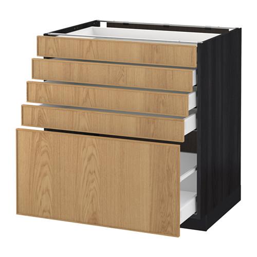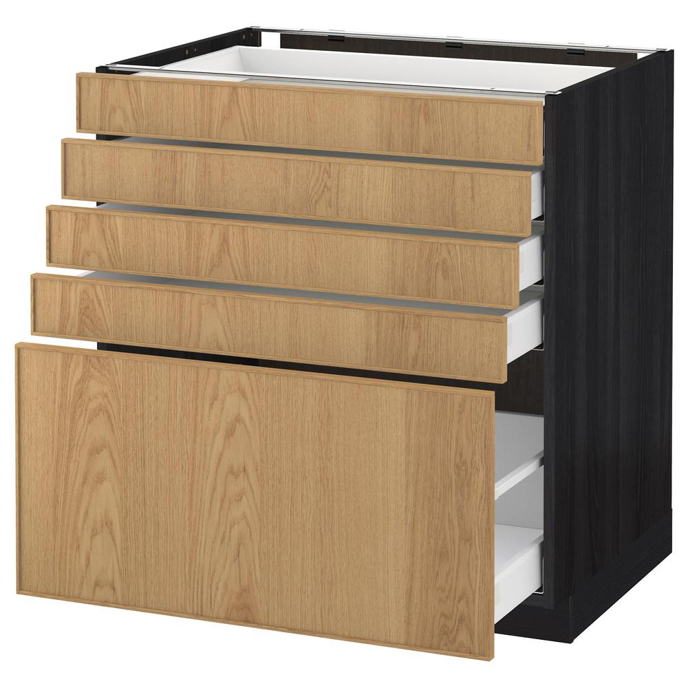 МЕТОД / МАКСИМЕРА Напольный шкаф с 5 ящиками - под дерево черный, Экестад дуб, 80x60 см