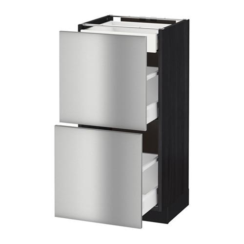 МЕТОД / МАКСИМЕРА Напольный шкаф/2фасада/3ящика - под дерево черный, Гревста нержавеющ сталь, 40x37 см