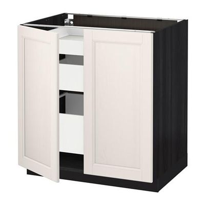 МЕТОД / МАКСИМЕРА Напольный шкаф с 2дверцами/3ящиками - Лаксарби белый, под дерево черный
