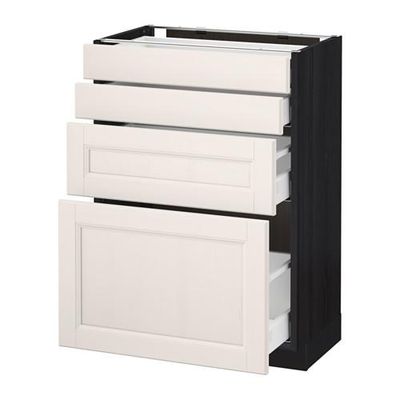 МЕТОД / МАКСИМЕРА Напольн шкаф 4 фронт панели/4 ящика - 60x37 см, Лаксарби белый, под дерево черный