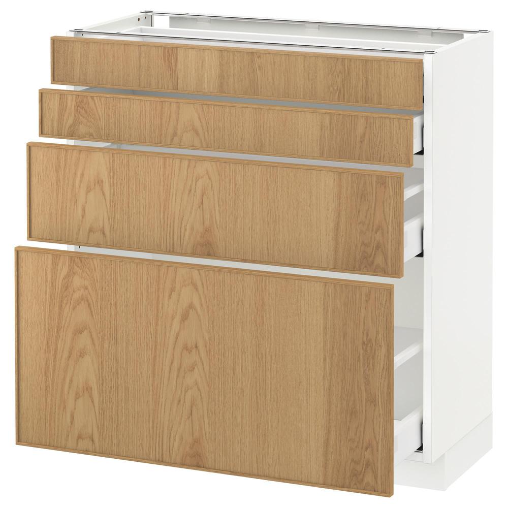 МЕТОД / МАКСИМЕРА Напольн шкаф 4 фронт панели/4 ящика - белый, Экестад дуб, 80x37 см