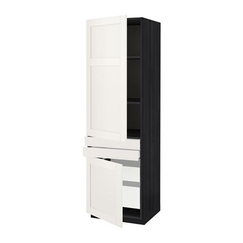 МЕТОД / МАКСИМЕРА Выс шкаф+полки/4 ящк/2двр/2фрнт - под дерево черный, Сэведаль белый