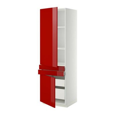 МЕТОД / МАКСИМЕРА Выс шкаф+полки/4 ящк/2двр/2фрнт - Рингульт глянцевый красный, белый