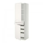 МЕТОД / МАКСИМЕРА Высок шкаф+полки/5ящк/2дверцы/2фрнт - 40x60x200 см, Нодста белый/алюминий, белый