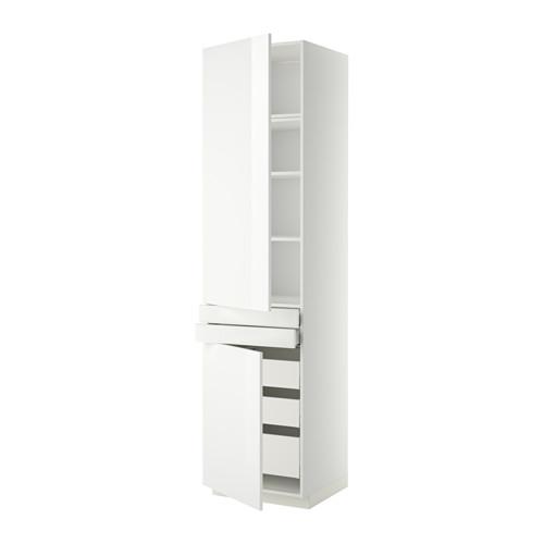 МЕТОД / МАКСИМЕРА Высок шкаф+полки/5ящк/2дверцы/2фрнт - белый, Рингульт глянцевый белый, 60x60x240 см