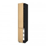МЕТОД / МАКСИМЕРА Выс шкаф+полки/4 ящк/2двр/2фрнт - под дерево черный, Экестад дуб