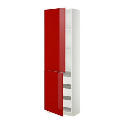 МЕТОД / МАКСИМЕРА Высокий шкаф+полки/3 ящика/2 дверцы - 60x37x200 см, Рингульт глянцевый красный, белый