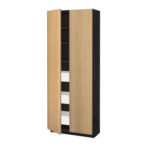 МЕТОД / МАКСИМЕРА Высокий шкаф с ящиками/2 дверцы - под дерево черный, Экестад дуб