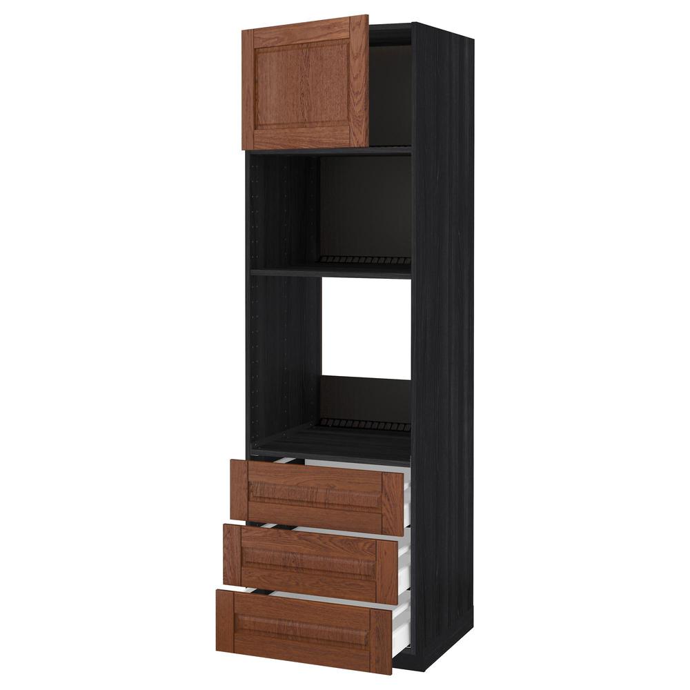 МЕТОД / МАКСИМЕРА Высок шкаф д/духовки/СВЧ/дверца/3ящ - под дерево черный, Филипстад коричневый, 60x60x200 см