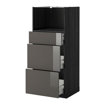 МЕТОД / МАКСИМЕРА Высокий шкаф д/СВЧ с 3 ящиками - Рингульт глянцевый серый, под дерево черный