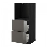 МЕТОД / МАКСИМЕРА Высокий шкаф с 2 ящиками д/духовки - Сэведаль белый, под дерево черный