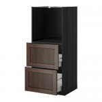 МЕТОД / МАКСИМЕРА Высокий шкаф с 2 ящиками д/духовки - Веддинге белый, под дерево черный
