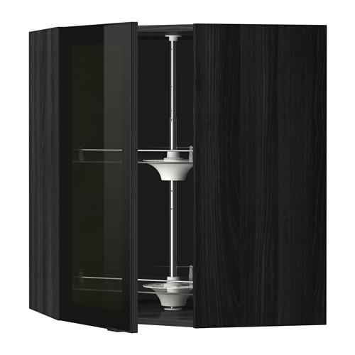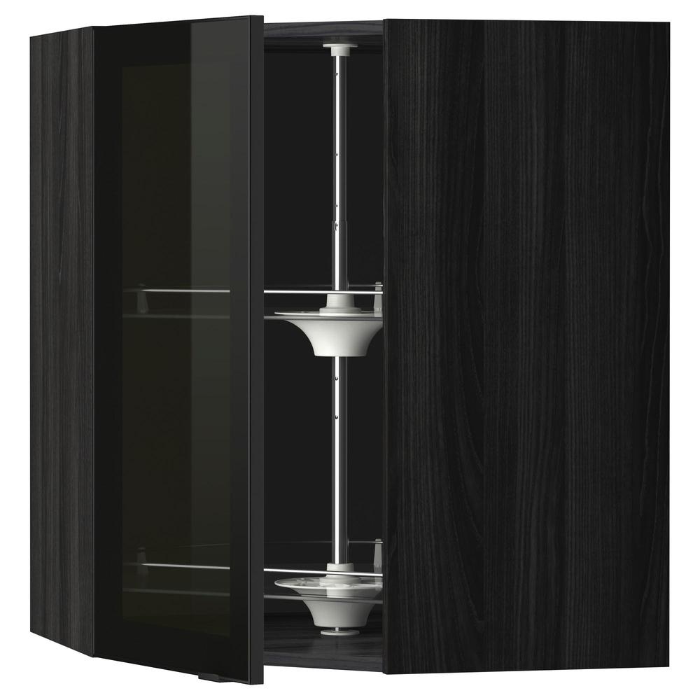 МЕТОД Углов навесн шк с врщ скц/сткл дв - под дерево черный, Ютис дымчатое стекло/черный, 68x80 см