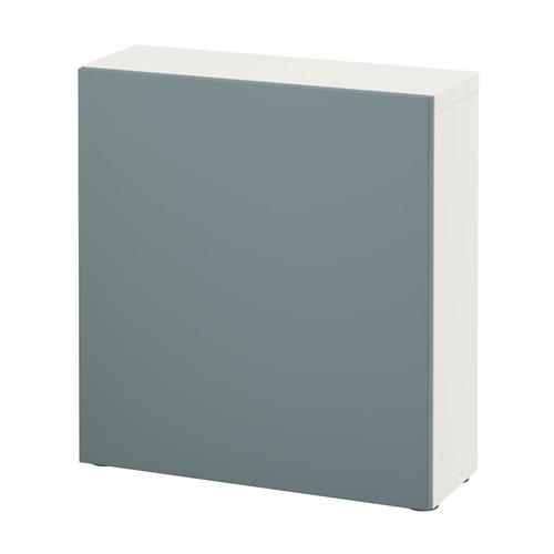 БЕСТО Стеллаж с дверью - белый/Вальвикен серо-бирюзовый