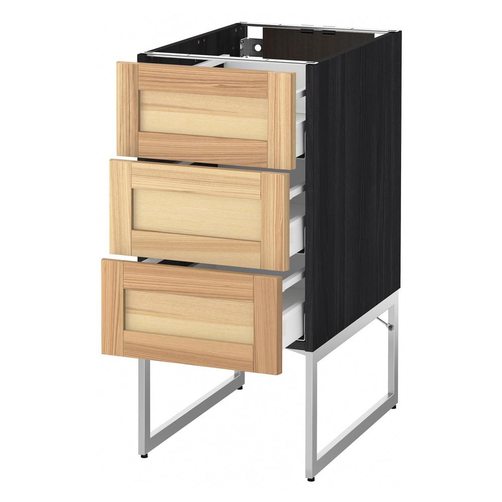 МЕТОД / МАКСИМЕРА Нплн шк 3 фрнт/3 средн ящика - под дерево черный, Торхэмн естественный ясень, 40x60x60 см