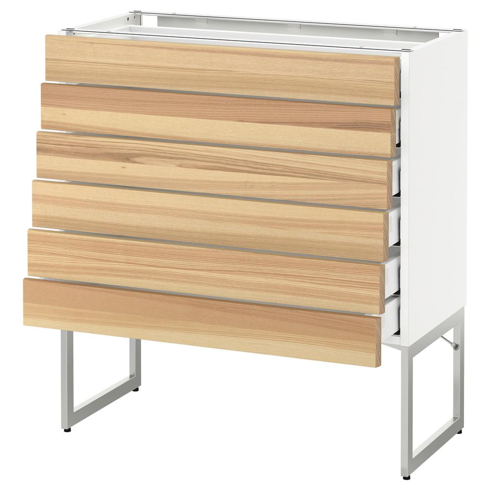 МЕТОД / МАКСИМЕРА Напольн шкаф 6фронт пнл/6 низ ящ - белый, Торхэмн естественный ясень, 80x37x60 см