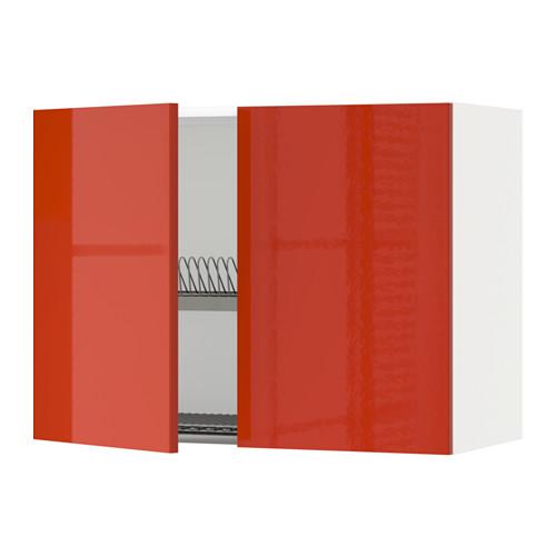 МЕТОД Навесной шкаф с посуд суш/2 дврц - белый, Ерста глянцевый оранжевый, 80x60 см