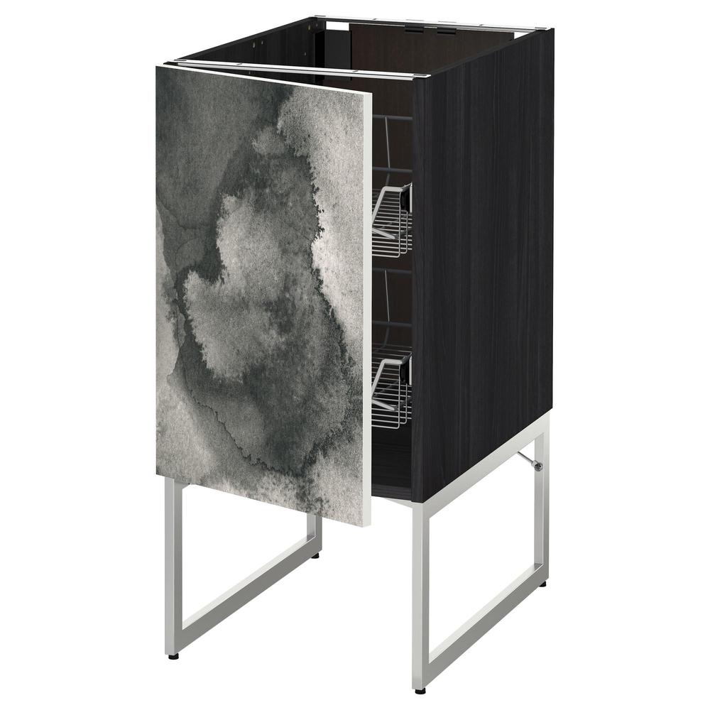 МЕТОД Напольный шкаф с проволочн ящиками - под дерево черный, Кальвиа с печатным рисунком, 40x60x60 см
