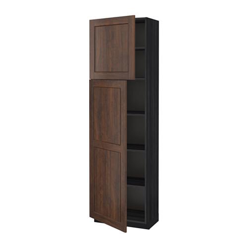МЕТОД Высокий шкаф с полками/2 дверцы - под дерево черный, Эдсерум под дерево коричневый, 60x37x200 см