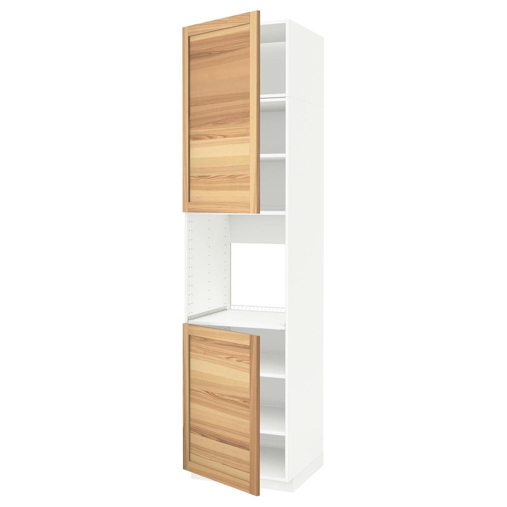 МЕТОД Высок шкаф д/духовки/2дверцы/полки - белый, Торхэмн естественный ясень, 60x60x240 см