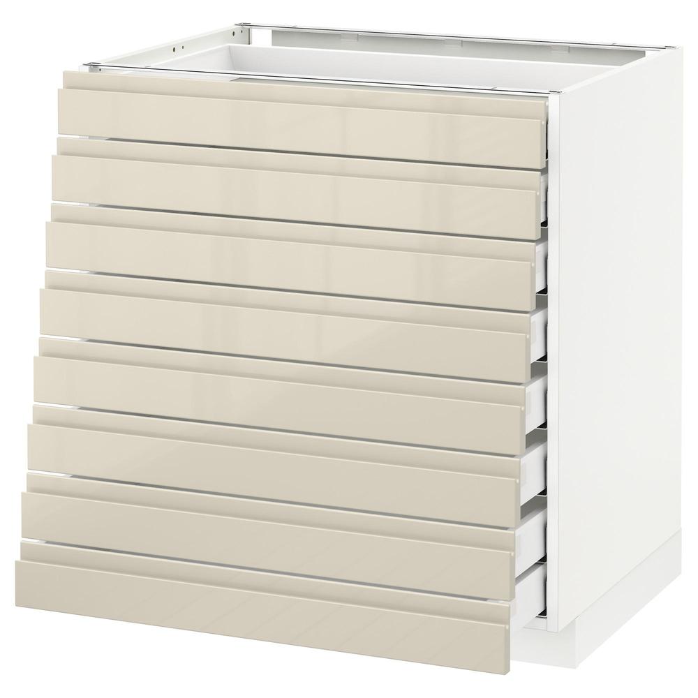 МЕТОД / МАКСИМЕРА Наполн шкаф 8 фронт/8 низк ящиков - белый, Воксторп глянцевый светло-бежевый, 80x60 см