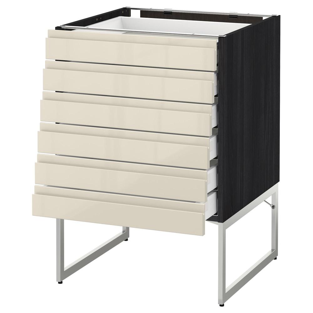 МЕТОД / МАКСИМЕРА Напольн шкаф 6фронт пнл/6 низ ящ - под дерево черный, Воксторп глянцевый светло-бежевый, 60x60x60 см