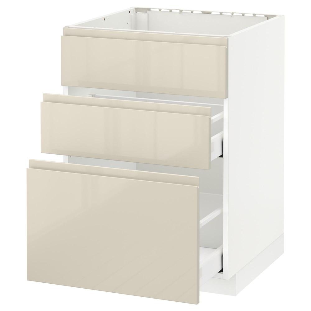 МЕТОД / МАКСИМЕРА Напольн шк п-мойку+3фрнт пнл/2ящ - белый, Воксторп глянцевый светло-бежевый, 60x60 см