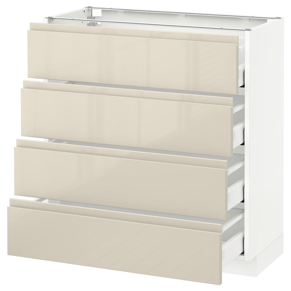 МЕТОД / МАКСИМЕРА Напольн шкаф 4 фронт панели/4 ящика - белый, Воксторп глянцевый светло-бежевый, 80x37 см