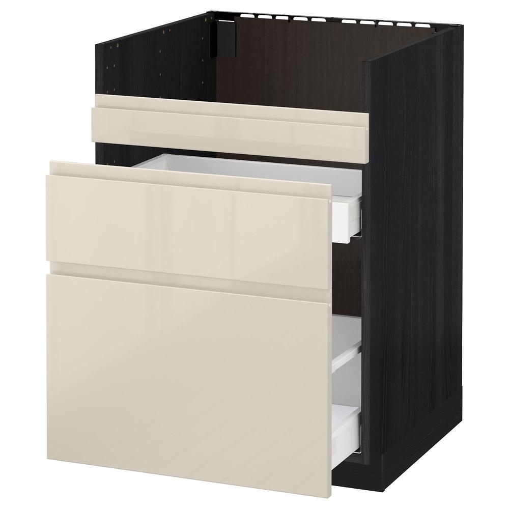 МЕТОД / МАКСИМЕРА Нап шкаф п/мойку ДУМШЁ/3фасада/2ящ - под дерево черный, Воксторп глянцевый светло-бежевый, 60x60 см