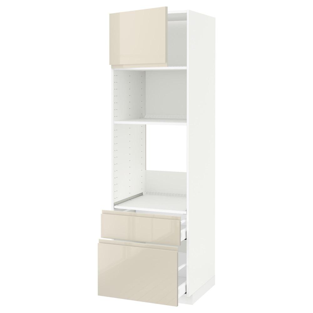 МЕТОД / МАКСИМЕРА Высок шкаф д/духовки/СВЧ/дверца/2ящ - белый, Воксторп глянцевый светло-бежевый, 60x60x200 см