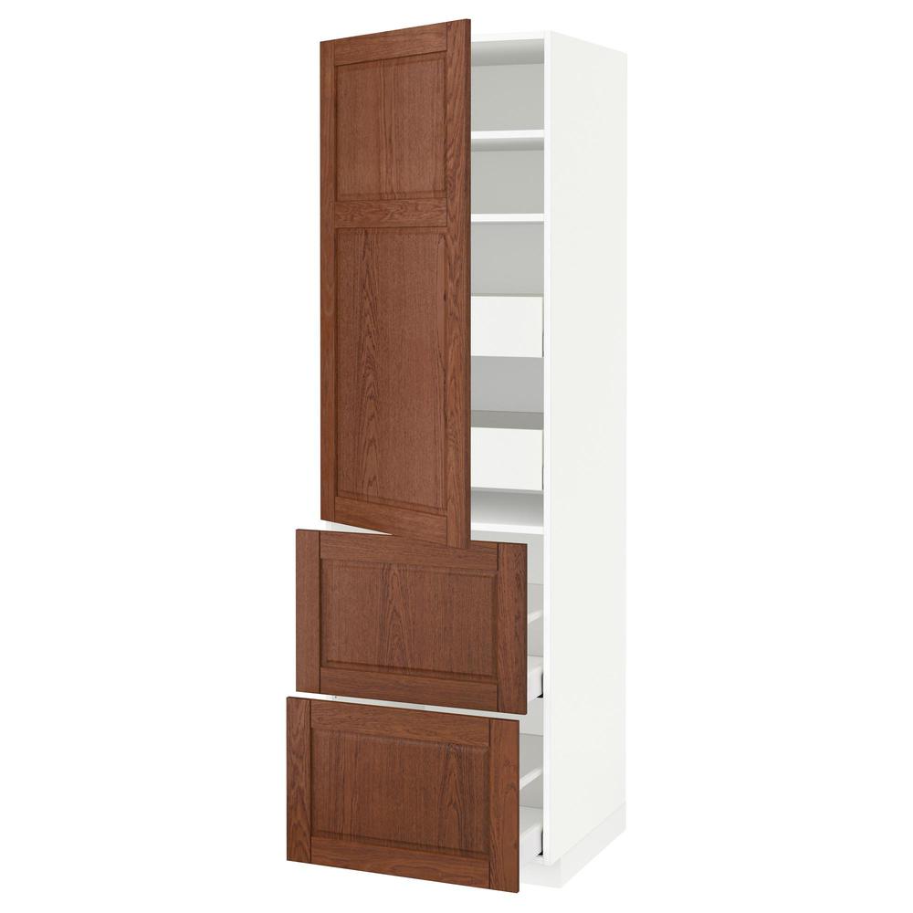 МЕТОД / МАКСИМЕРА Высокий шкаф+полки/4 ящика/2дверцы - белый, Филипстад коричневый, 60x60x220 см 0.0/5 оценка (0 голосов)
