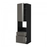 МЕТОД / МАКСИМЕРА Высокий шкаф д/СВЧ+дверца/3 ящика - под дерево черный, Рингульт глянцевый серый, 60x60x200 см
