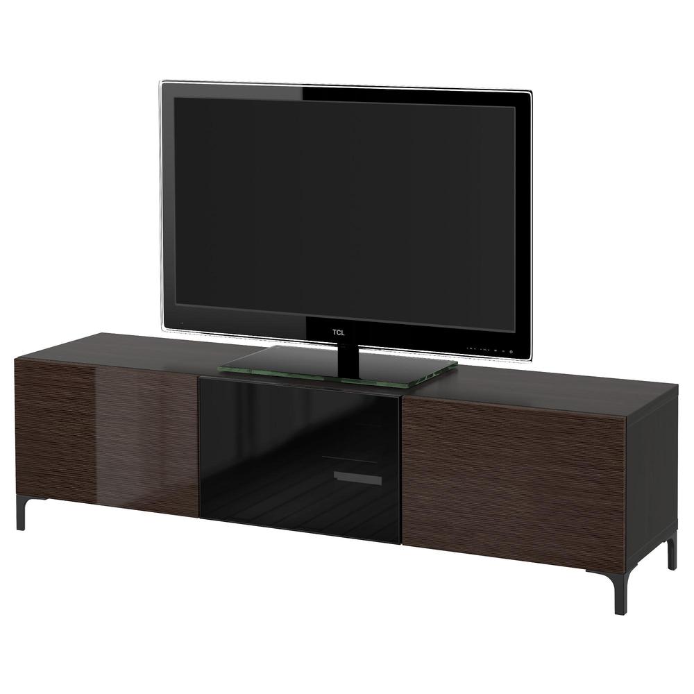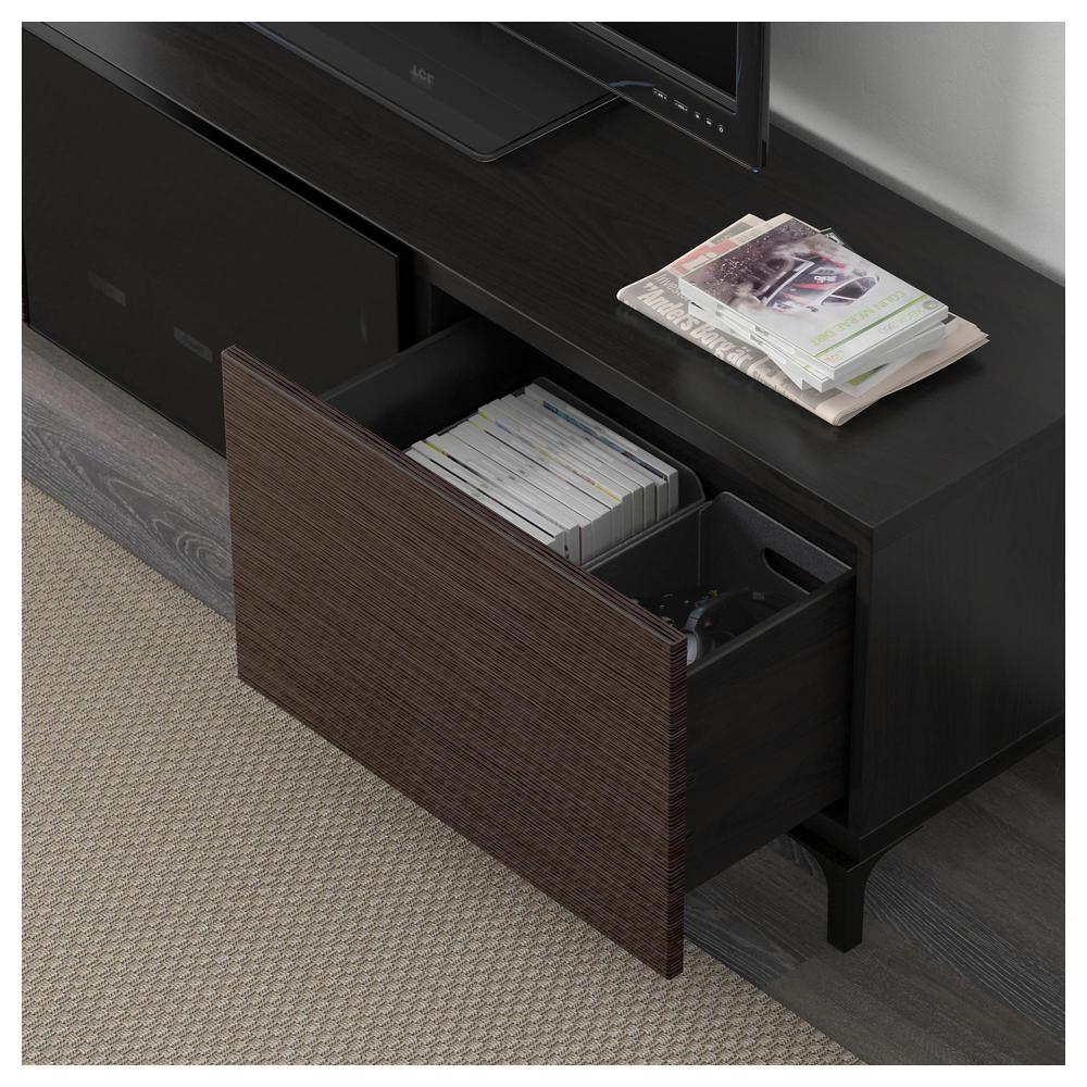 БЕСТО Тумба под ТВ с ящиками и дверцей - черно-коричневый/Сельсвикен глянцевый/коричневый дымчат стекло, направляющие ящика, плавно закр